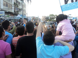Ya en horas de la tarde y mientras esperábamos el paso del papa, nos